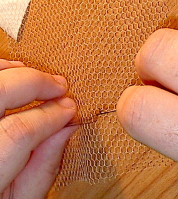 Poke the hook under a line of the netting (notice it's all hexagonal